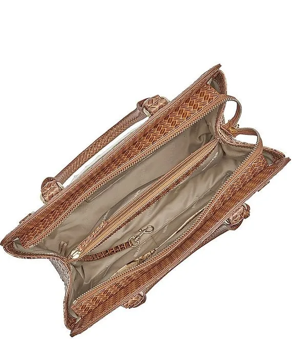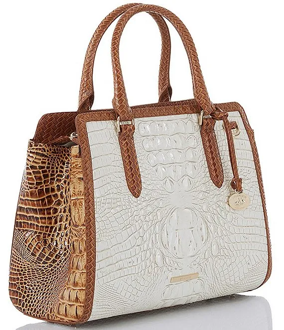 From the Taber Collection by BRAHMIN, the Coconut Milk Small Finley Carryall Satchel Bag features: