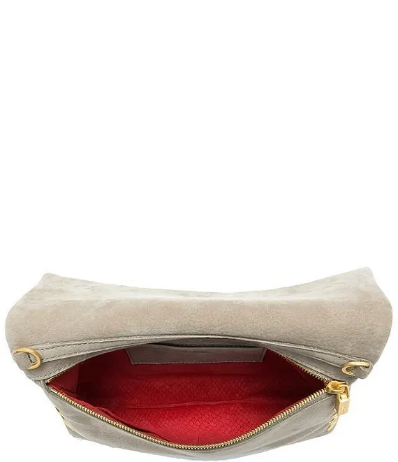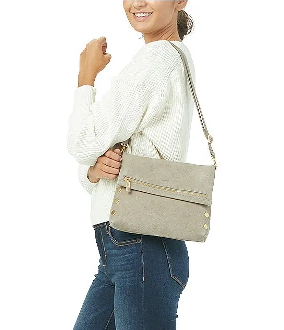 From Hammitt, the VIP Studded Leather Fold-Over Zip Flap Medium Crossbody Bag features: