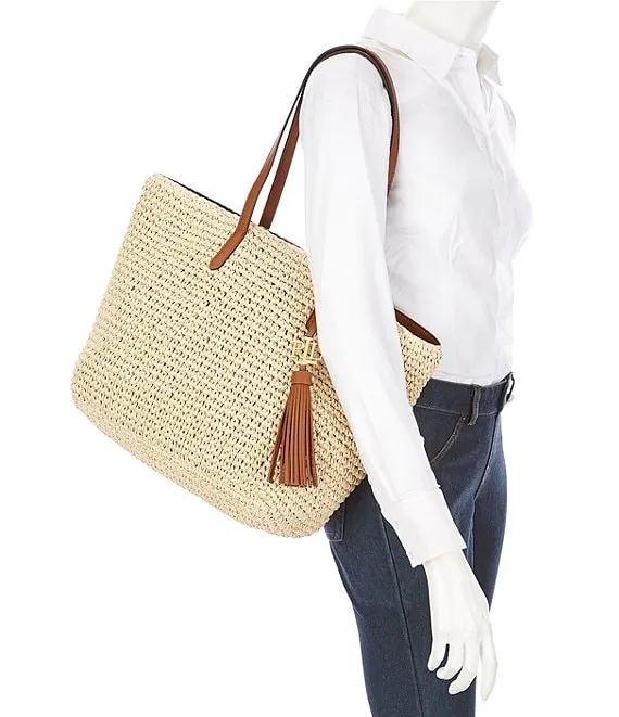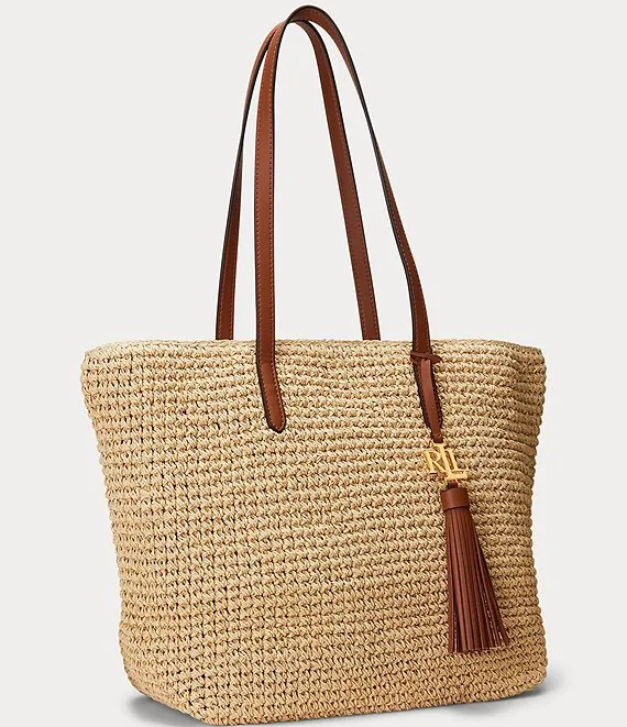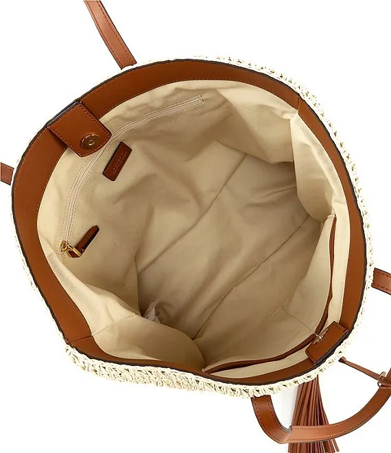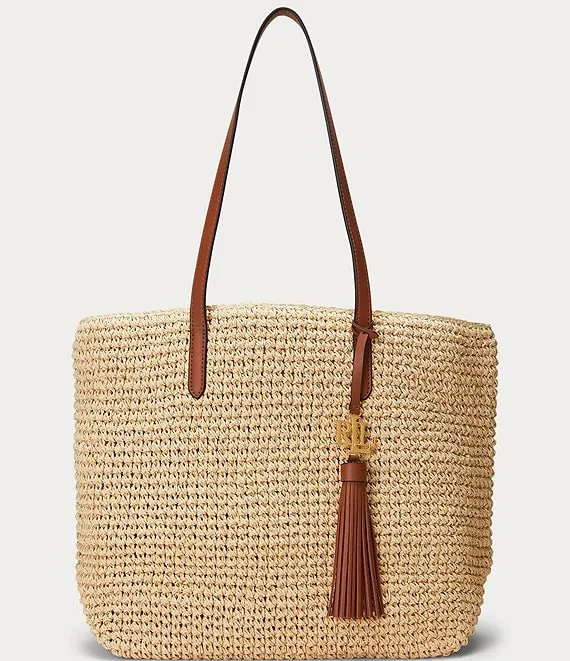 From Lauren Ralph Lauren, the Whitney Crochet Straw Medium Tote Bag features: