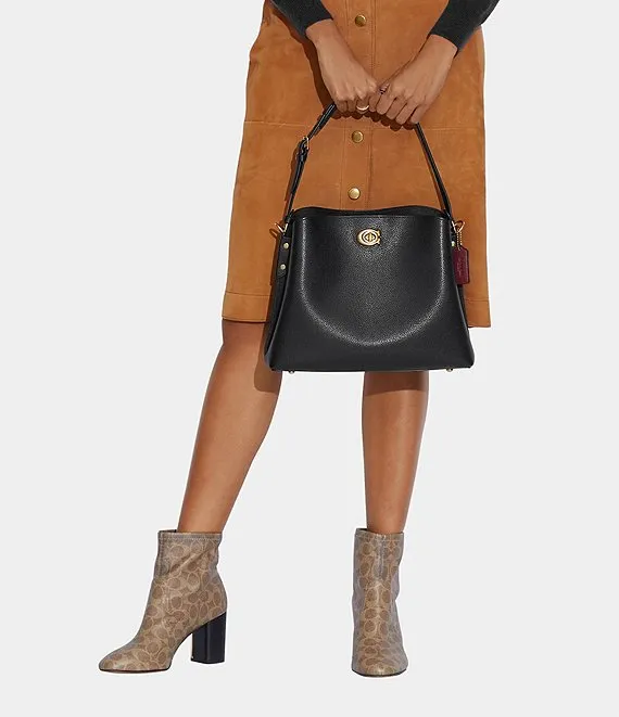 From COACH, the Willow Pebble Leather Shoulder Bag features: