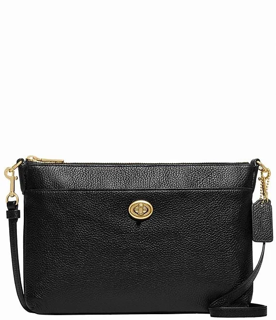 COACH Pebbled Leather Pouch Solid Black Shoulder Bag