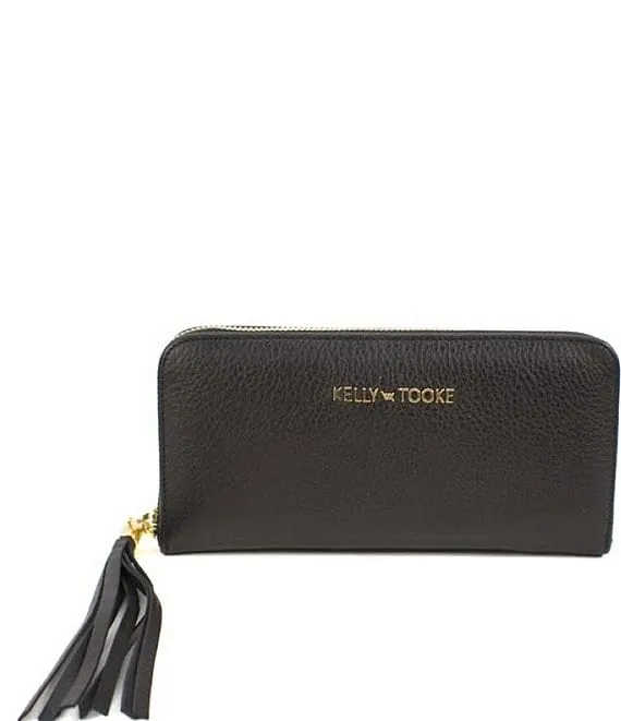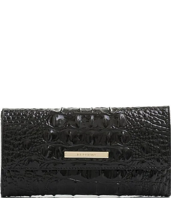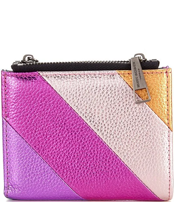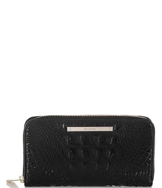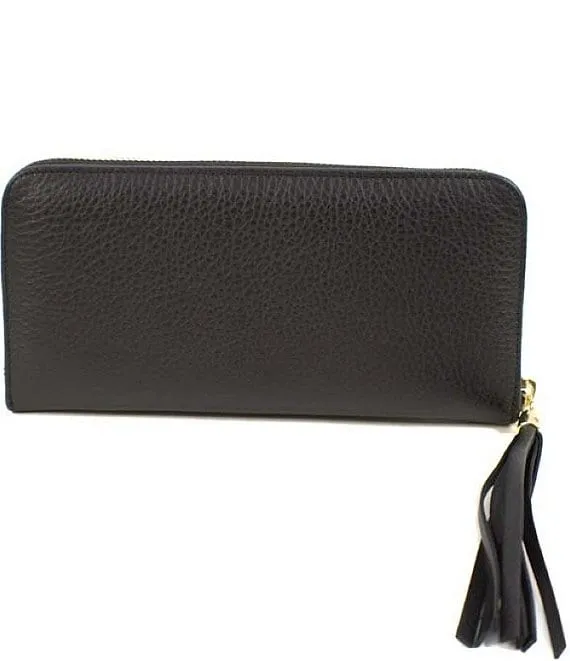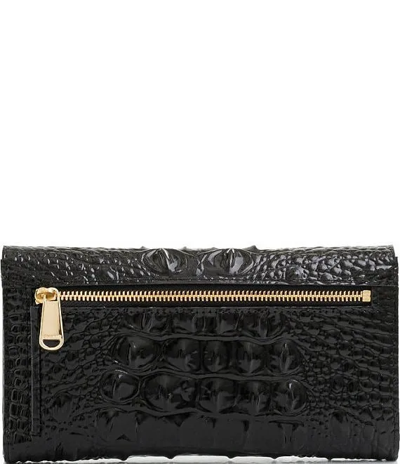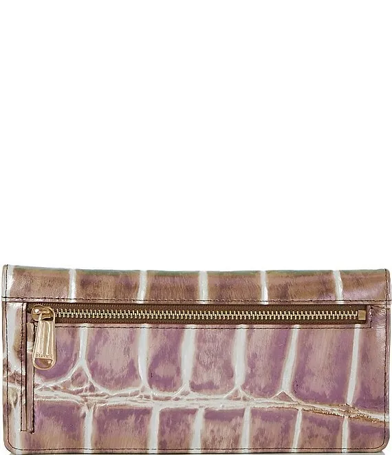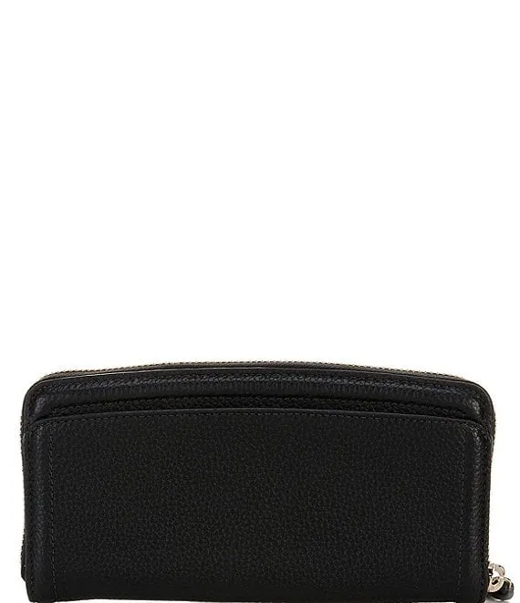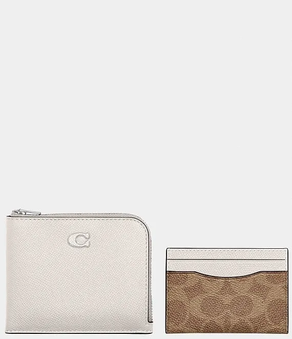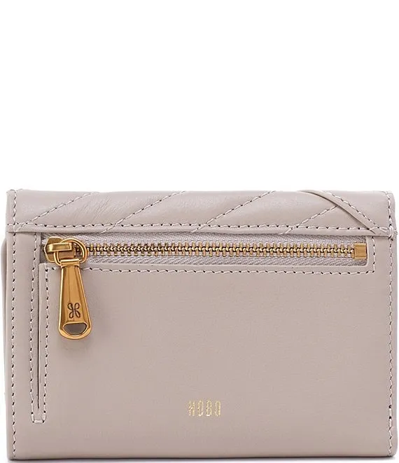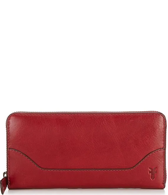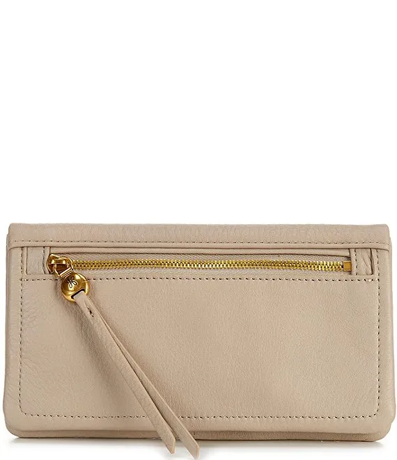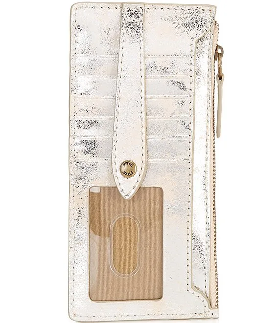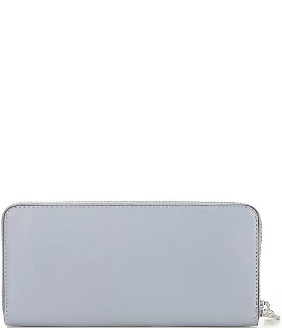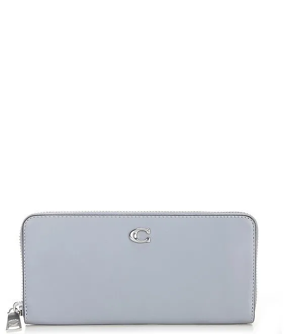 COACH Calf Leather Slim Silver Tone Accordion Zip Wallet