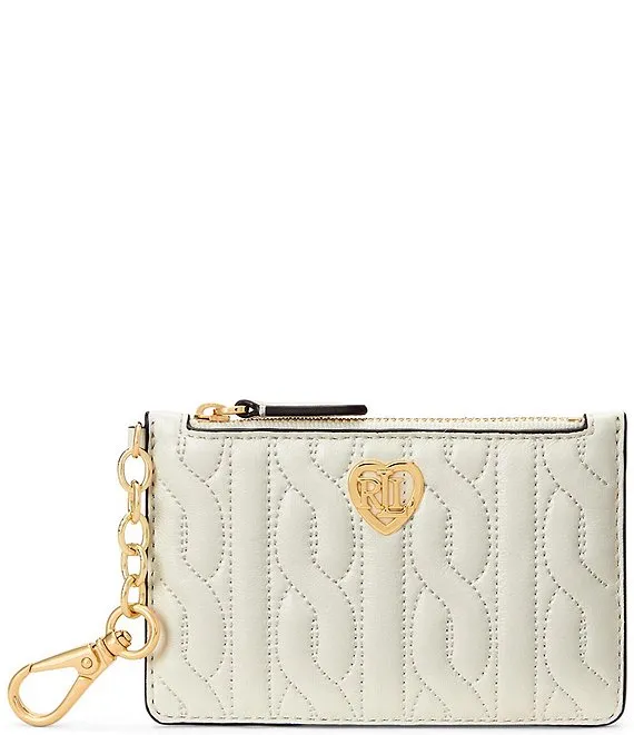 Lauren Ralph Lauren Heart Logo Quilted Nappa Leather Zip Card Case