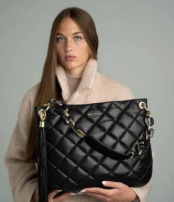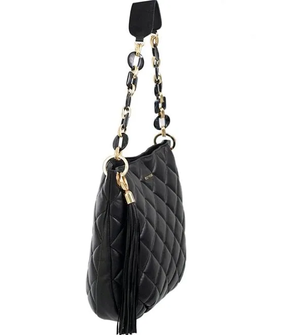 From Kelly-Tooke, the Harley Quilted Black Hobo Bag features: