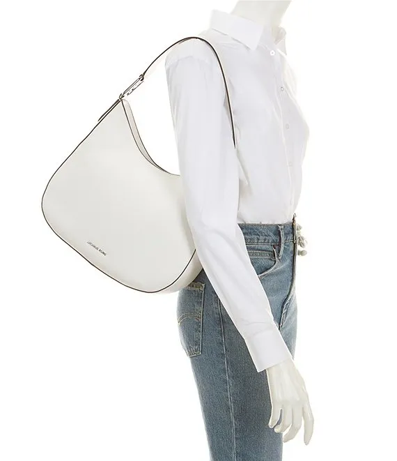 From Michael Kors, the Kensington Pebbled Leather Silver Hardware Large Hobo Shoulder Bag features: