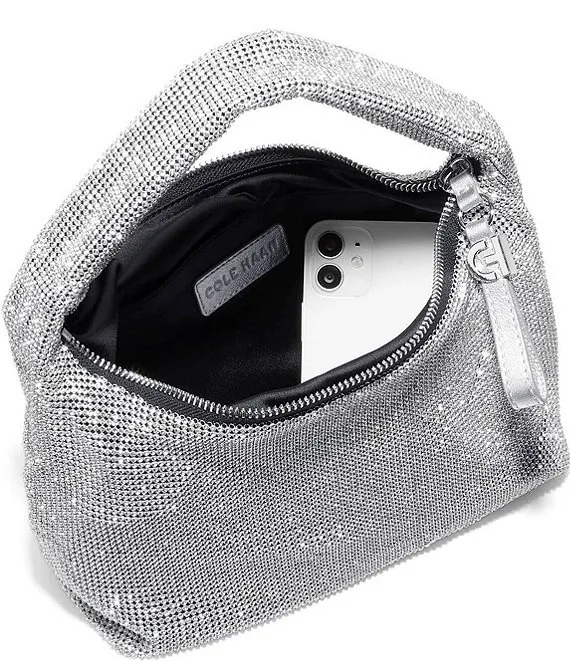 From Cole Haan, the Mini Rhinestone Mesh Hobo Shoulder Bag features: