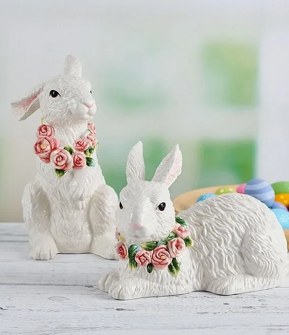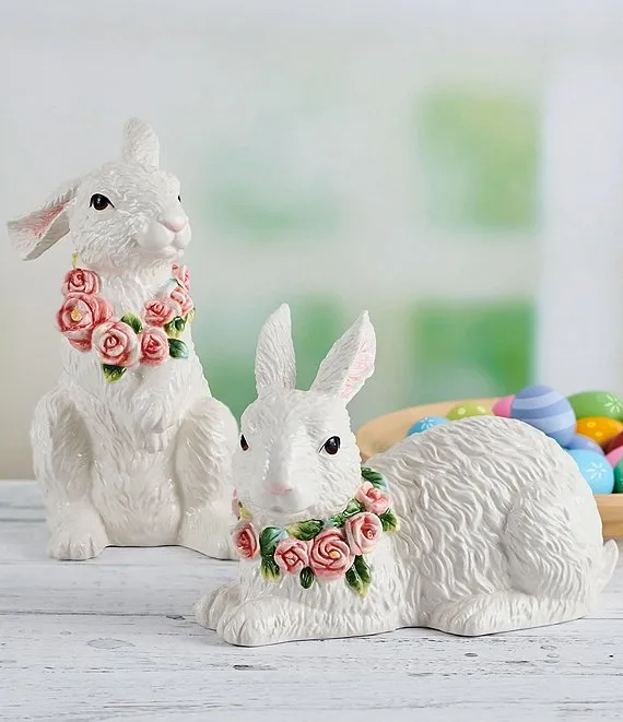 • The realistic design of this sitting rabbit figurine is adorned with delicate flowers that embrace the liveliness of spring all year around