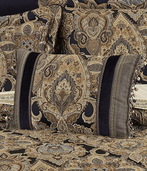 The Amara Boudoir Pillow utilizes three fabrications for a truly unique accent piece to your decor. making this fine statement piece ideal to coordinate with the Amara bed set for an elegant look.