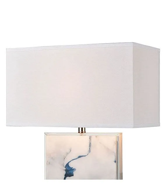 • A clear, crystal base and edging display a marbled, blue and white acrylic slab