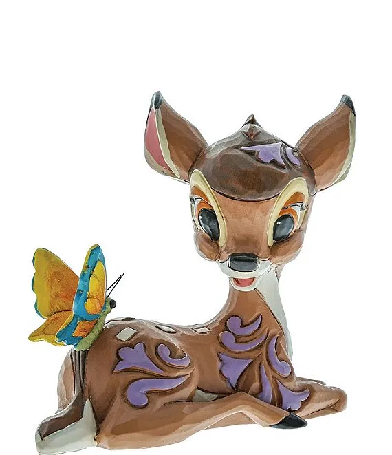 With pleasing rosemaling detail and beautiful craftsmanship, this lovely Disney piece is a prize from the forest. Jim Shore celebrates the 80th anniversary of Bambi with this sweet miniature, as the peaceful deer sits gracefully with a butterfly.
