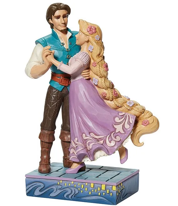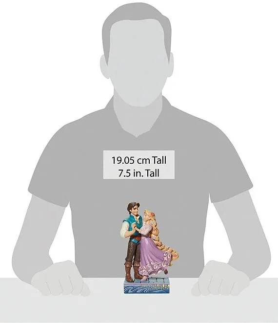 Disney has brought us stories of adventure, triumph, and most often, love. This darling statuette by Jim Shore features the beloved characters, Rapunzel and Flynn Rider. Together in embrace, there is no distance love cannot travel.