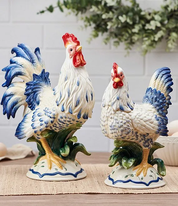 Add a touch of country charm to your kitchen or any other room in your home with this Sicily Blue Rooster and Hen Figurine Set.