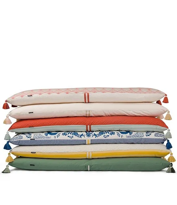 - Jacquard, yarn-dye stripes, and decorative tassels