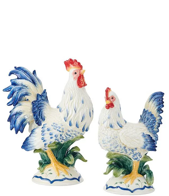 Fitz And Floyd Sicily Blue Rooster and Hen Figurine Set