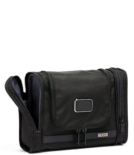 - Designed to hang from towel racks or sit on flat surfaces, it features an easy-access U-zip opening to the main compartment and two convenient exterior side-zip pockets,as well as an antibacterial lining.