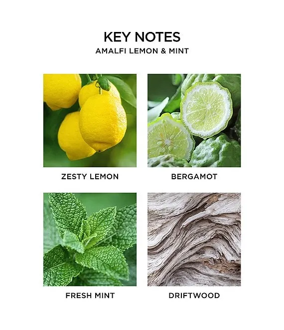 Evoke the essence of Italy’s Amalfi Coast with zesty lemon and orange bergamot blended with fresh mint and a hint of driftwood.