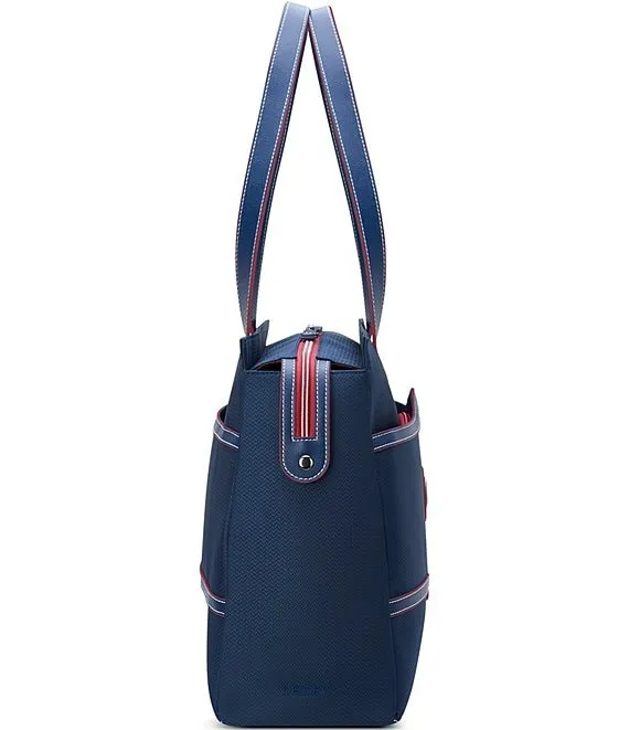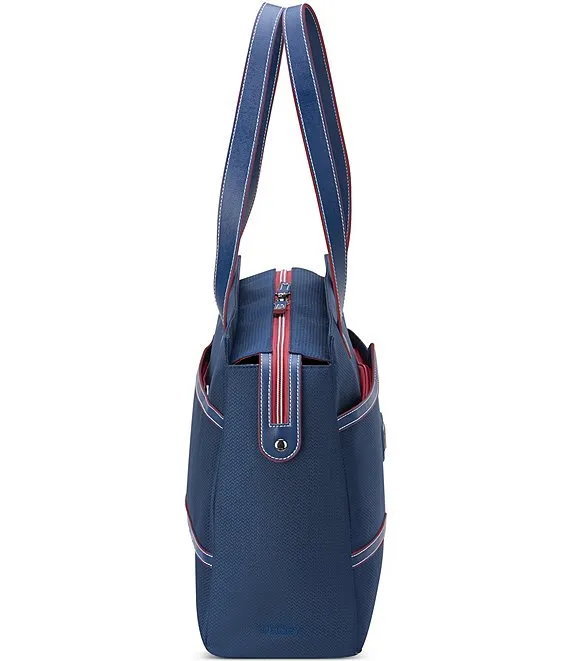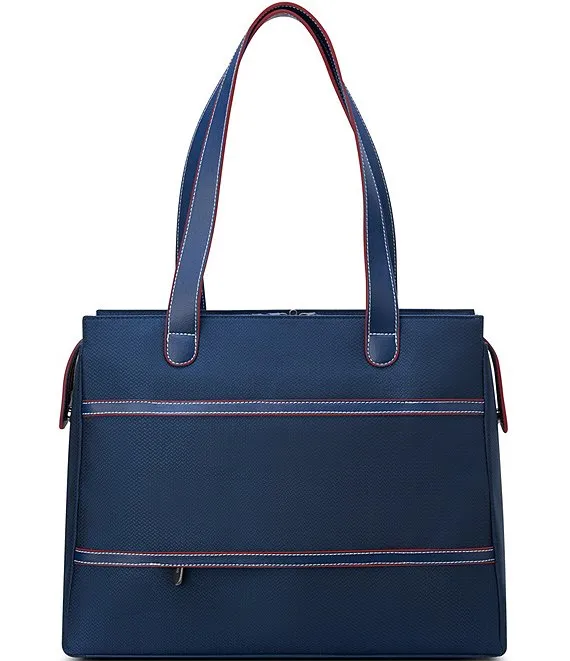- Vegan-leather trims and the deluxe soft-touch interior are the perfect accents to this stylish tote