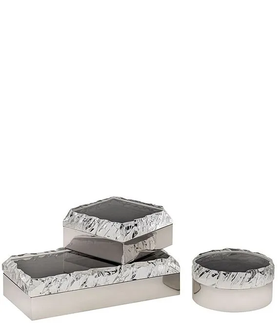 - A striking silhouette with a polished stainless steel base and solid, clear acrylic lid