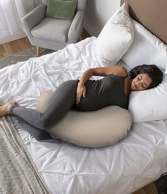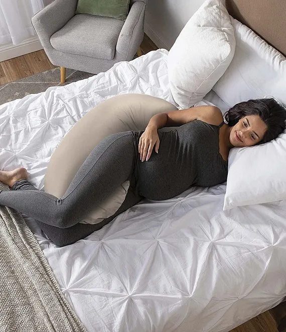 - Unique contoured shape and fill for maximum comfort. Designed to follow the shape of your body and cradle your growing baby bump