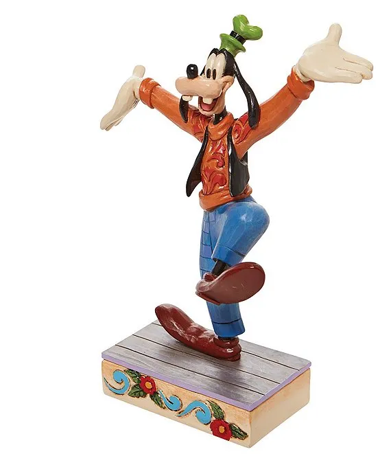Goofy, the good-natured and clumsy pal of Mickey Mouse strikes a gleeful pose in this Jim Shore creation which celebrates the colorful anthropomorphic dog's 90th anniversary. With his classic toothy grin, Goofy is eager to join your family.
