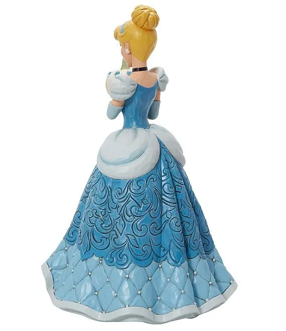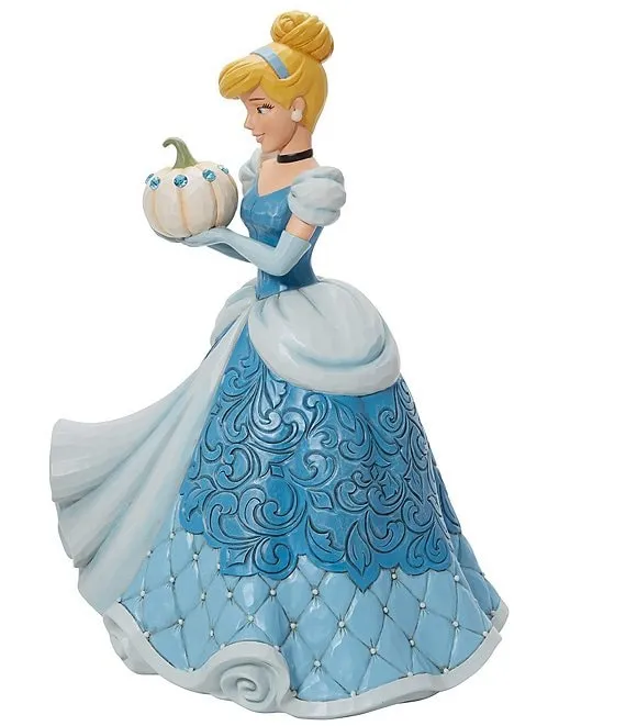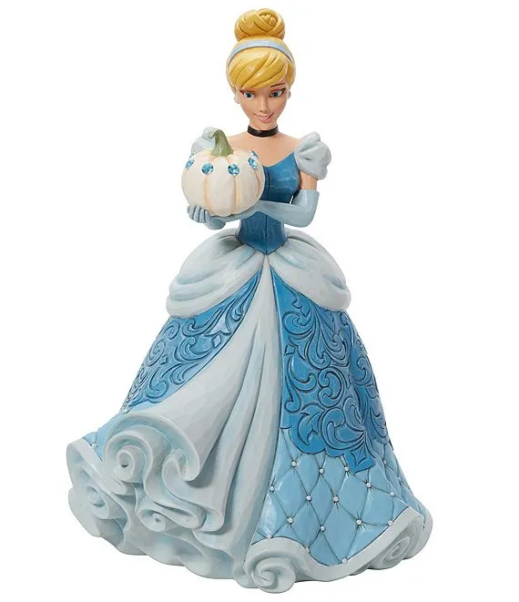 In a fantastically carved dressed, Cinderella holds a bedazzled pumpkin in this addition to the Enchanted Master Piece Collection, 5th in the series. Designed by Jim Shore, the princess shines with a radiant smile and rosemaled blue gown.