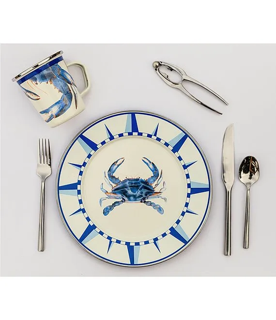 This enamelware is made of carbon steel coated with a porcelain enamel and trimmed in stainless steel. There will be variations in the shading of colors and pattern formations which are the results of the hand-dipped process.