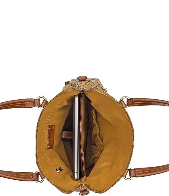 From the Etched Roses Collection by Patricia Nash, the Prairie Rose Print Convertible Backpack features: