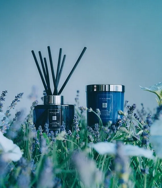 Aromatic English lavender nestles among a cocooning note of white musk and night-blooming moonflowers. Crafted in the English countryside in a signature glass design. Burn time approx. 45 hours. Lid included. Wax height 4.78cm, width 7.5cm.
