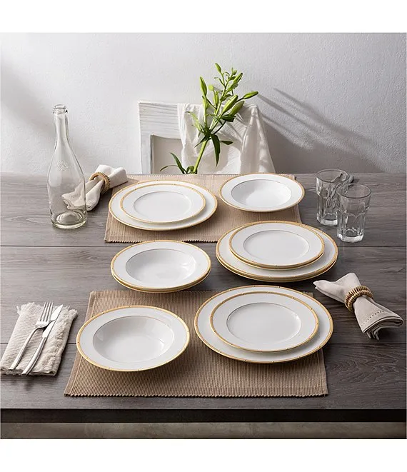 From the Rochelle Gold Collection by Noritake, this 12-piece set features: