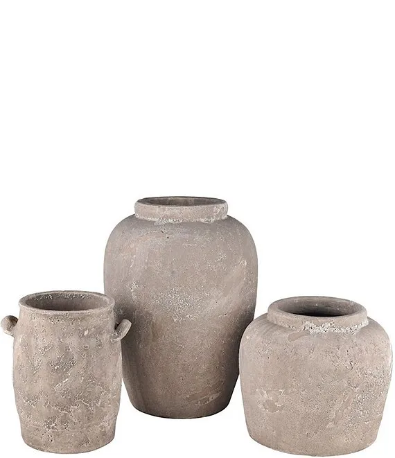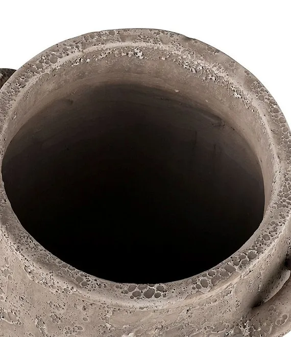- Made from earthenware with a dry textured grey finish, this vase has a wide rounded body