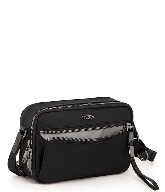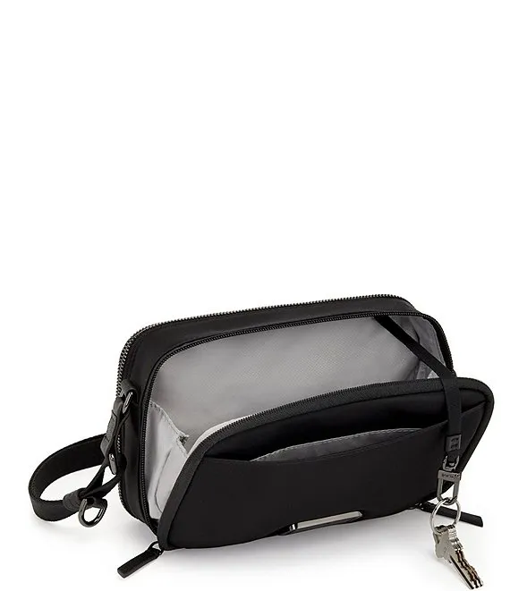 - Adjustable crossbody strap with D-ring compatible with select Tumi accessories