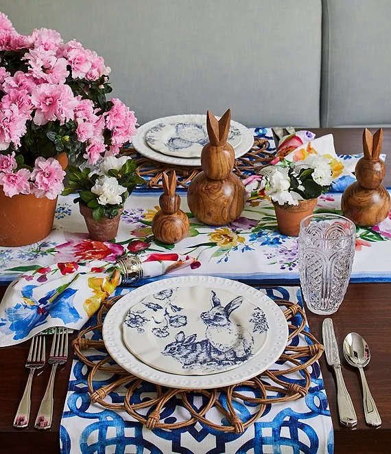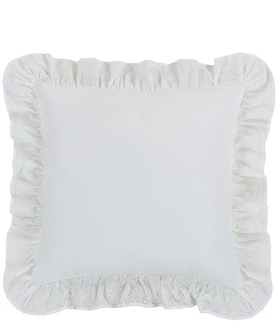 Easter Collection Happy Embroidered Bunny Ruffled Square Pillow