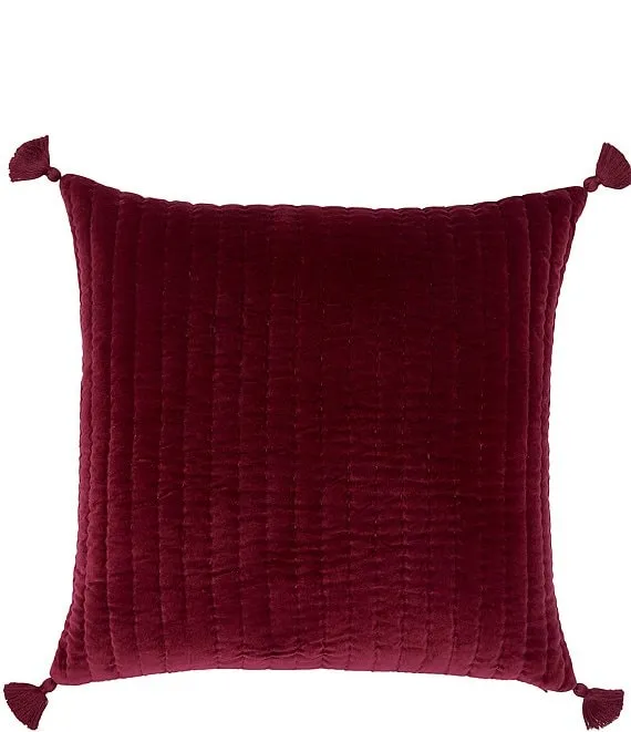 Velvet Berry Channel Quilted and Tasseled Square Pillow