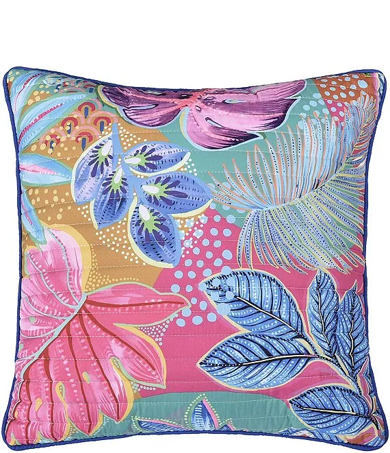 J. By J. Queen New York Hanalei Hawaiian-Inspired 18" Square Quilted Decorative Throw Pillow