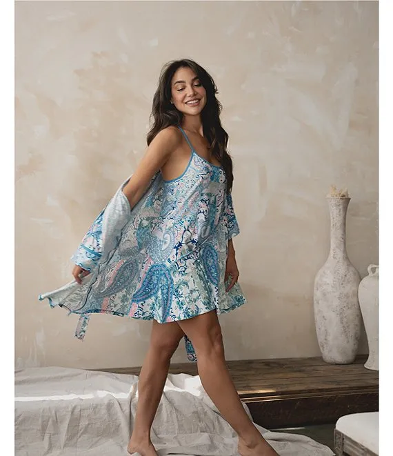 Brushed Knit Sleeveless Scoop Neck Paisley Tile Print Chemise