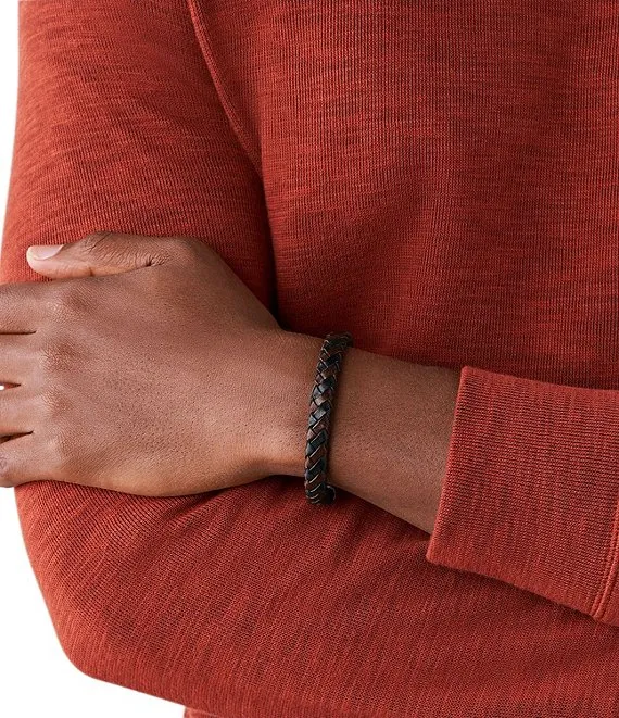 • Fossil Braided Woven Leather Adjustable Line Bracelet