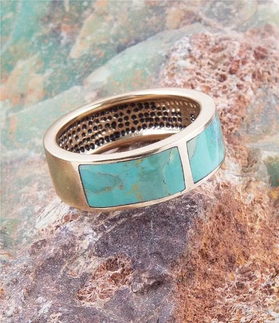 From Barse, the Bronze and Genuine Stone Turquoise Band Ring features: