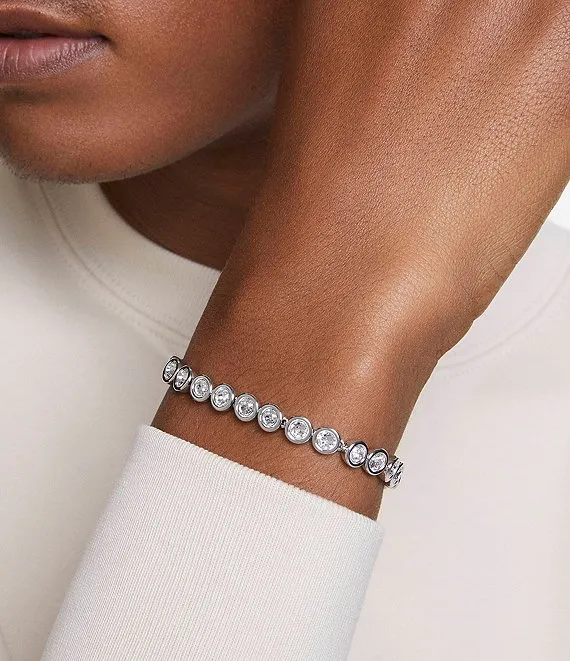 From Swarovski, the Crystal Imber Silver Tennis Line Bracelet features: