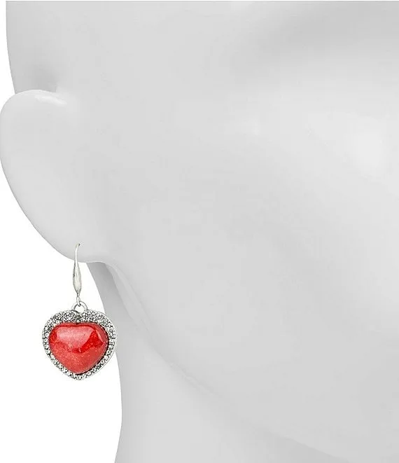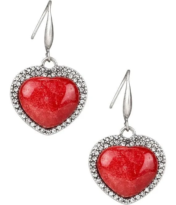 Red Stone Heart Pave Accent Drop Earrings