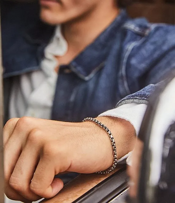 This timeless piece is one that can be worn on repeat thanks to the sturdy round box chain. Proudly made in the USA, the Beck Round Box Chain Bracelet in Oxidized Sterling Silver is a simple bracelet that can be dressed up or down, making it an ideal everyday staple.