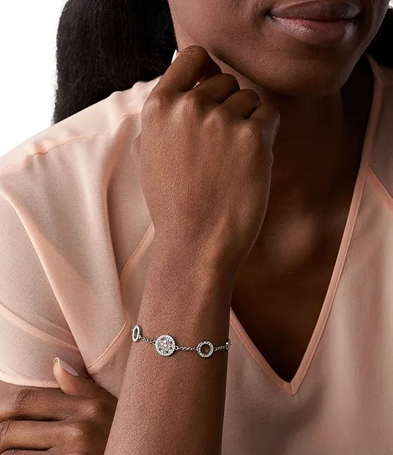 Fossil Val Mosaic Mother-of-Pearl Disc Station Crystal Line Bracelet