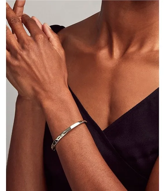 Super shiny hammered metal in a modern silhouette, the Zorte Bangle Bracelet in Silver is your ideal accessory whether worn stacked or solo.