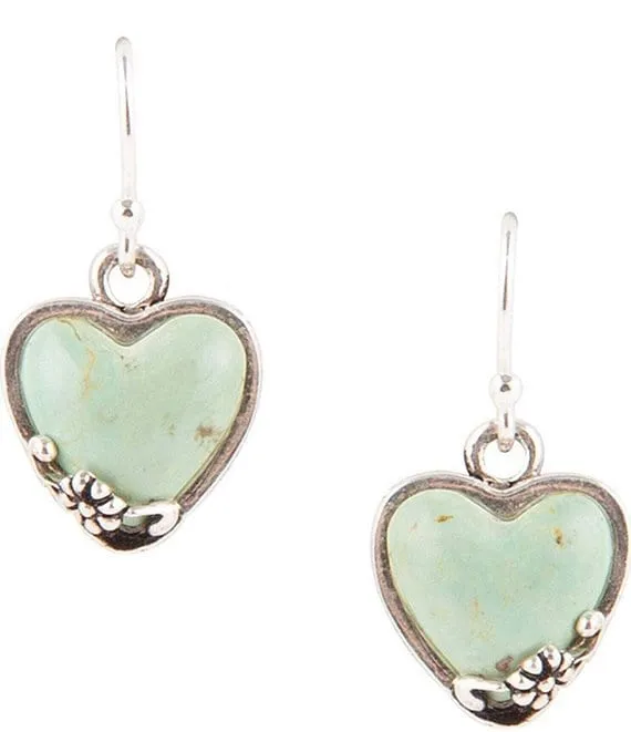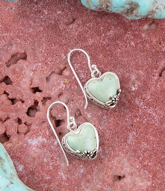 Sterling Silver and Genuine Stone Turquoise Heart Drop Earrings