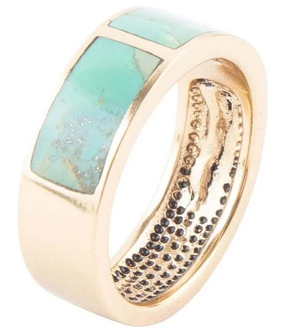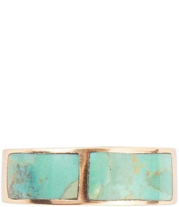Bronze and Genuine Stone Turquoise Band Ring