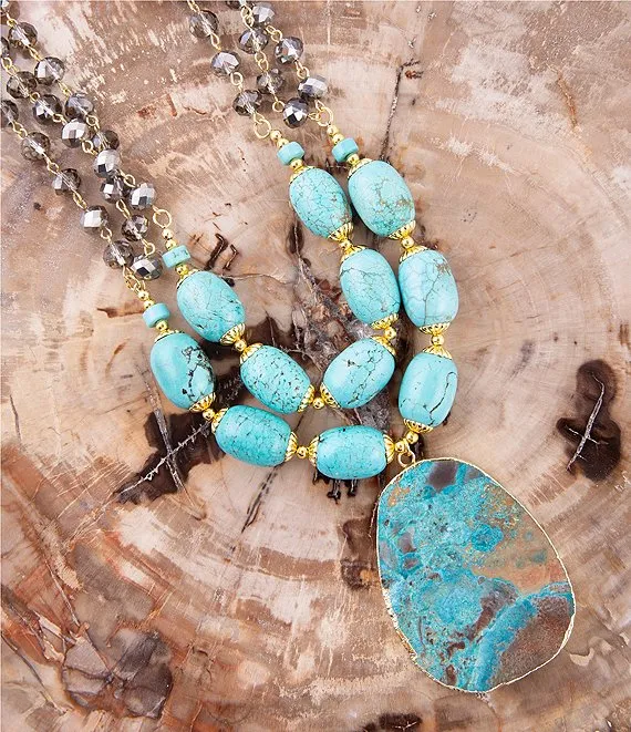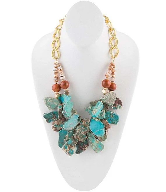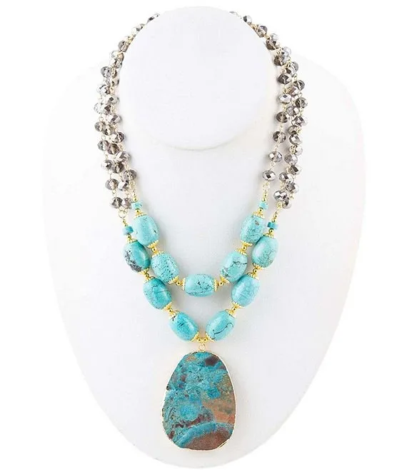 Genuine Stone Two Row Statement Necklace