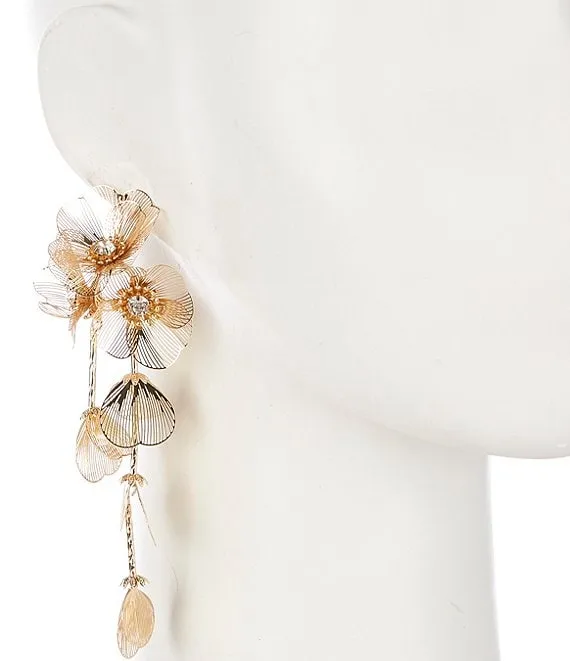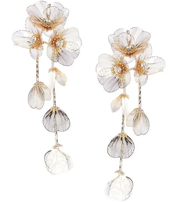 Crystal Flower Filigree Drop Statement Earrings