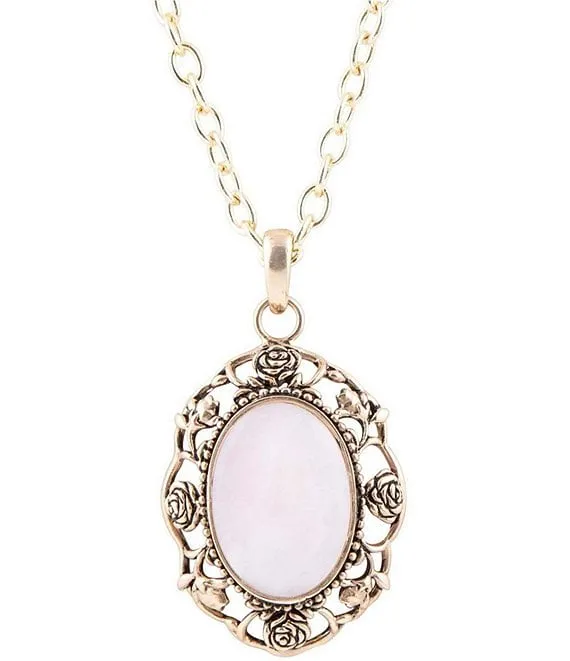 Genuine Stone Statement Gold Tone Short Pendant Necklace