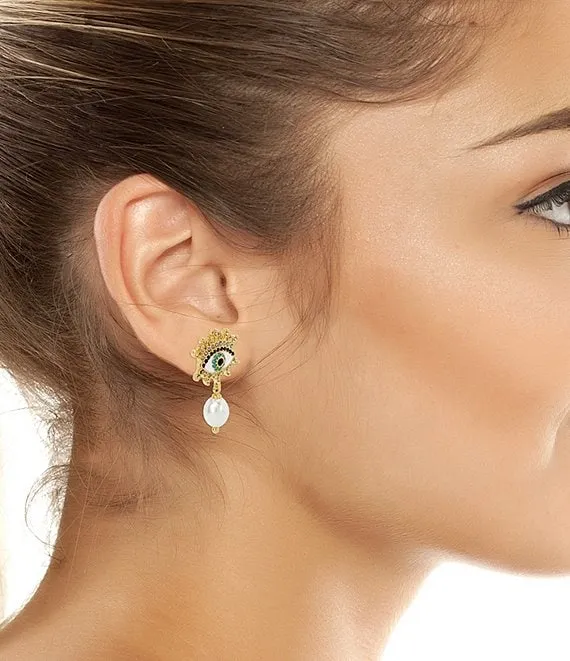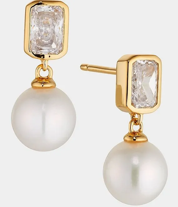 8mm Freshwater Pearl Gold Drop Earrings