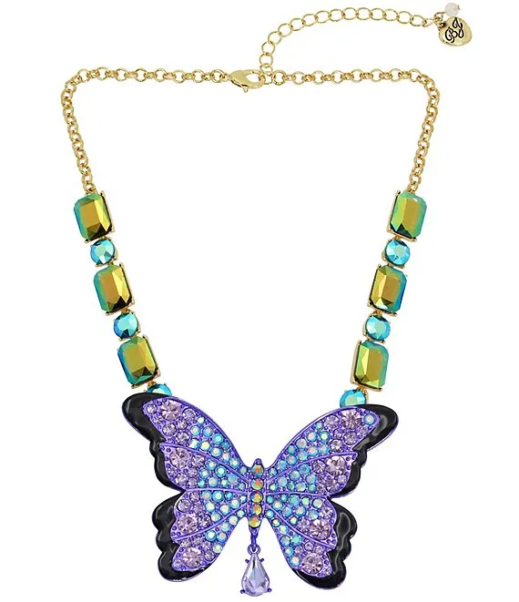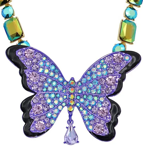 Crystal Butterfly Rhinestone Pendant Statement Necklace