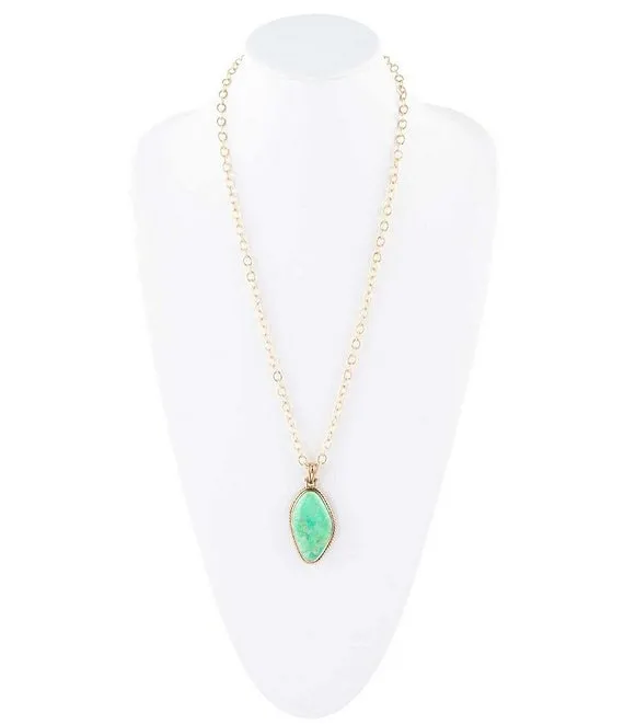 Bronze and Lime Turquoise Long Pendant Necklace